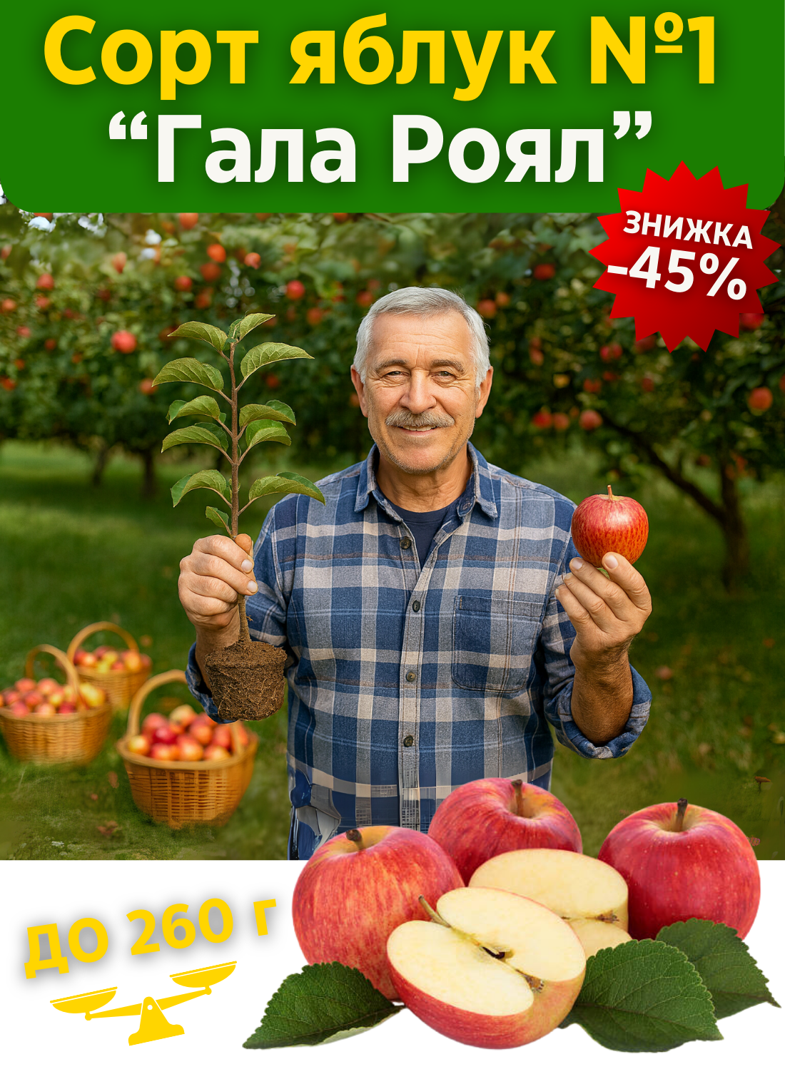 Яблука важать до 260 г кожне — ідеальні для продажу, дарування або споживання.