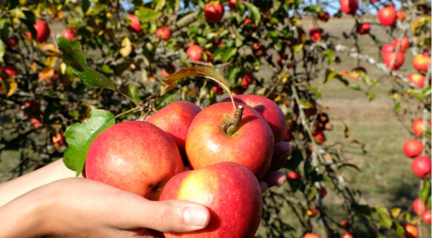 Яблука дозрівають у серпні-вересні. Знімайте їх обережно, не пошкоджуючи плодоніжку. Зберігаються довго — до весни.