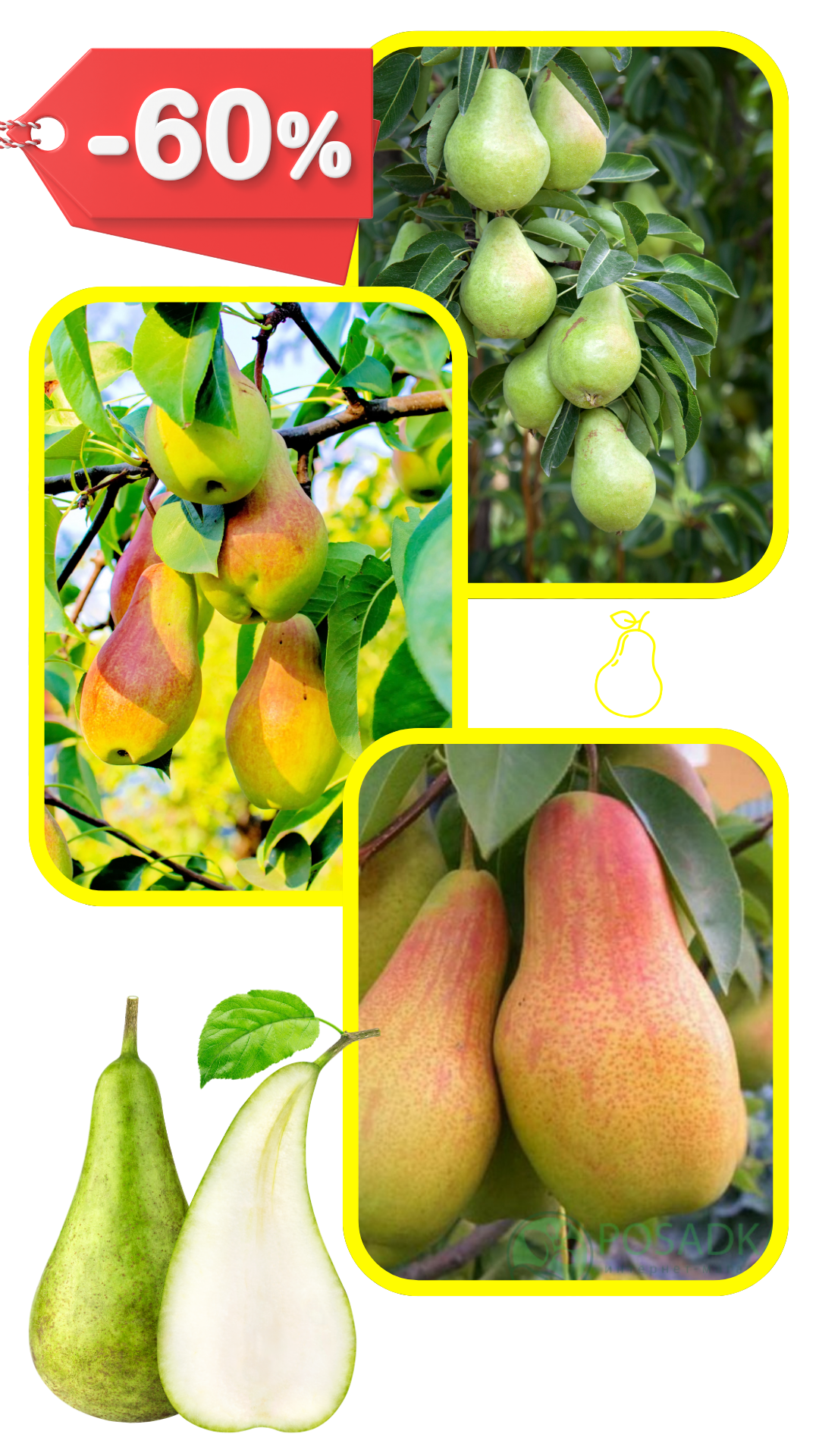 Саджанці забезпечують рясний урожай великих і смачних груш до 45 кг з дерева.
