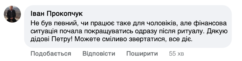 — Ні, я ніколи не брав і не братиму грошей за молитви та обряди. Це мій дар, і я його дарую людям. Єдине, що потрібно – це свічка для обряду. Свічку можна отримати за символічну плату, яка покриває витрати на віск. Також  ці гроші йдуть на те, щоб покрити витрати на відправку, оскільки моїм рідним доводиться їздити до найближчого міста. Та ви самі по ціні бачите, що про «вигоду» тут нічого казати. Сам обряд – він безкоштовний. І для мене це головне.