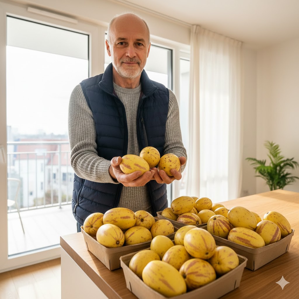Поставте пепіно «Рума» на добре освітлене підвіконня або засклений балкон. Оптимально — багато розсіяного світла без різких протягів.