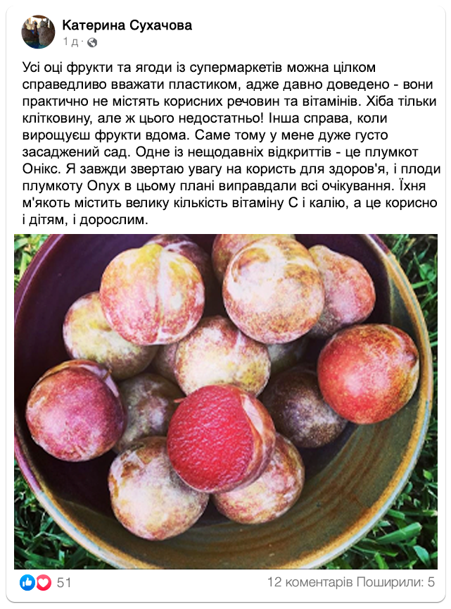 Характеристики та переваги сорту: витриваліший за абрикос та смачніший за сливу!