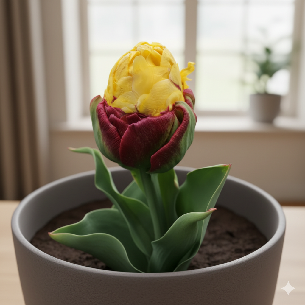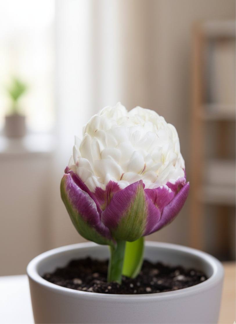 Для успішного вирощування тюльпанів «Ice Cream» у кімнатних умовах оберіть світле місце з м’яким, розсіяним освітленням.