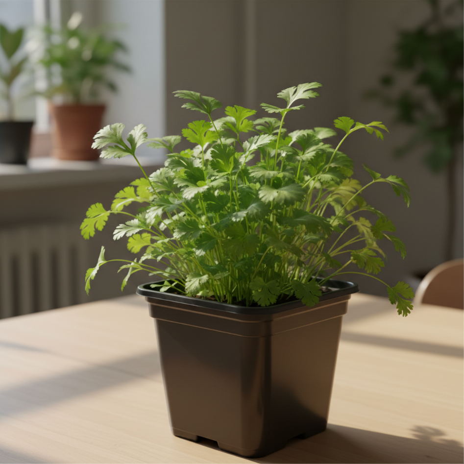 Пишна, соковита та дуже ароматна. Ця петрушка росте густо і швидко відновлюється після зрізання. Ідеальна для супів, салатів, м’яса й щоденних страв. У кімнатних умовах формує міцні листочки та тримає аромат краще, ніж магазинна. Ви зрізаєте частину — і зелень знову відростає хвилями.